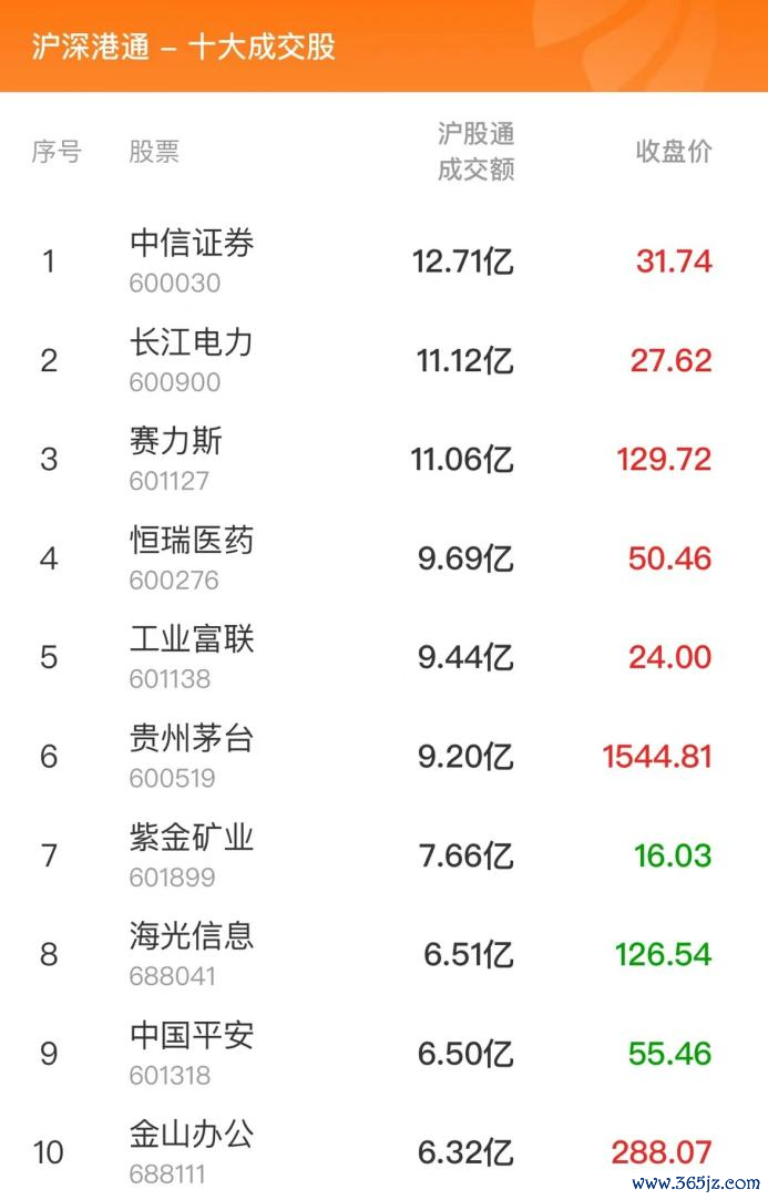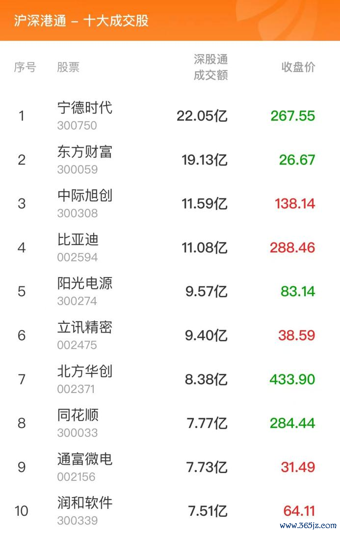 交易所公布的当日沪深港通十大成交股显示,中信证券、长江电力、赛力斯位列沪股通前三,成交额分别为12.71、11.12、11.06亿元;宁德时代、东方财富、中际旭创位列深股通前三,证券融资APP成交额分别为22.05、19.13、11.59亿元。
